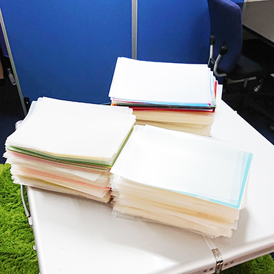 使用済みクリアホルダーを「アスクル」さんが買い取り、買い取り金は環境NGO等に寄付されます。