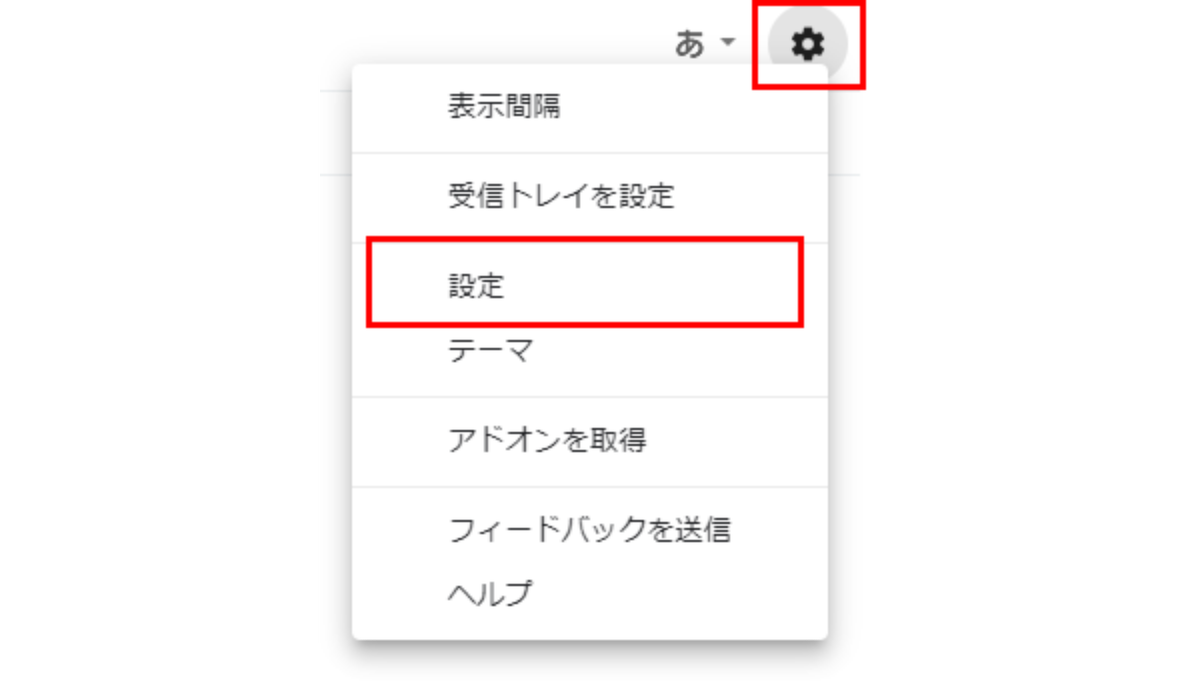 Gmailの右上にある歯車をクリックし、「設定」を選択してください。