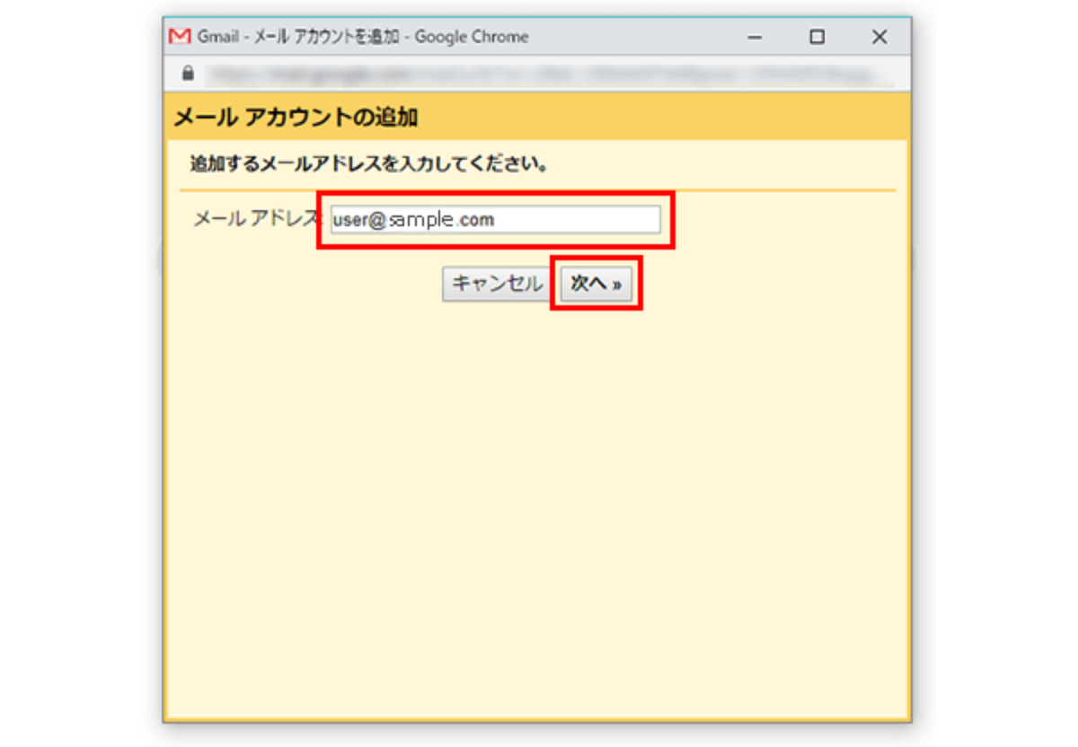 設定するメールアドレスを入力し、【次へ】をクリックしてください。