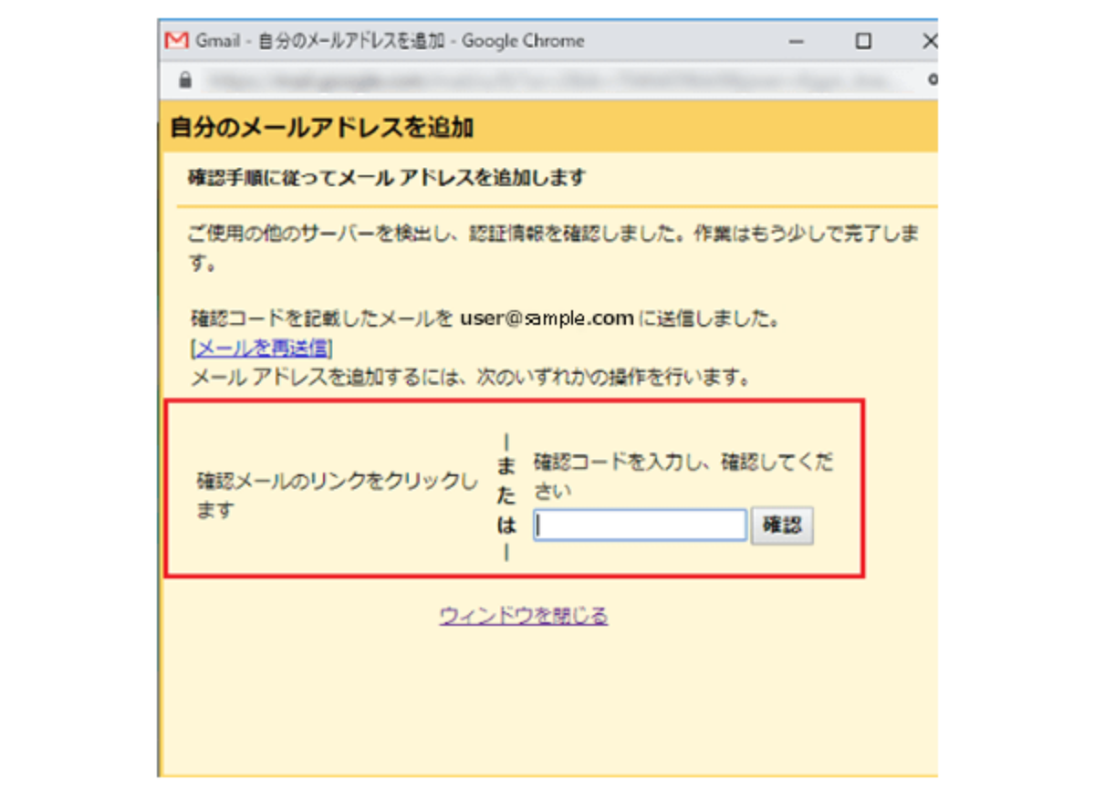 設定中の該当メールアドレス宛に、Gmailより認証メールが届きます。