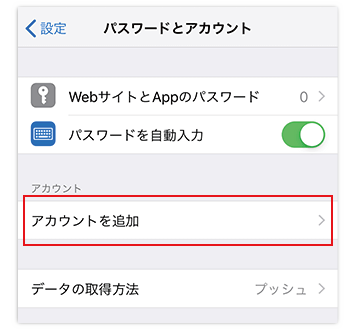「アカウントを追加」をタップします