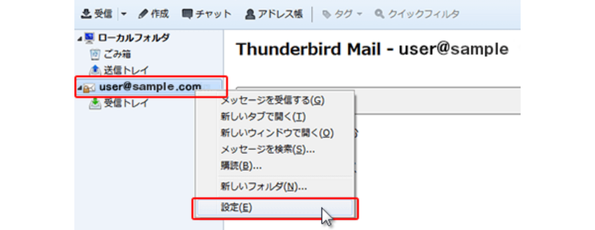 メールアカウントを右クリックし、「設定(E)」を選択してください。