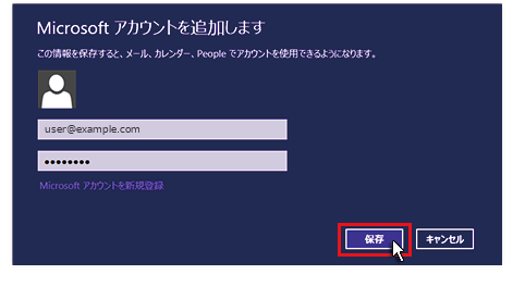 ※Microsoft アカウントの追加が未登録の場合は“Microsoft アカウントを新規登録”にて事前に登録が必要です。