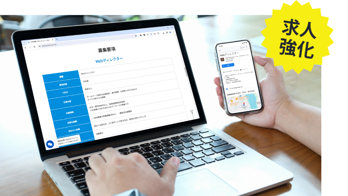 新たに求人媒体を契約する必要はありません。自社の公式サイトに求人情報を掲載するだけで、「Googleしごと検索」に反映されます。