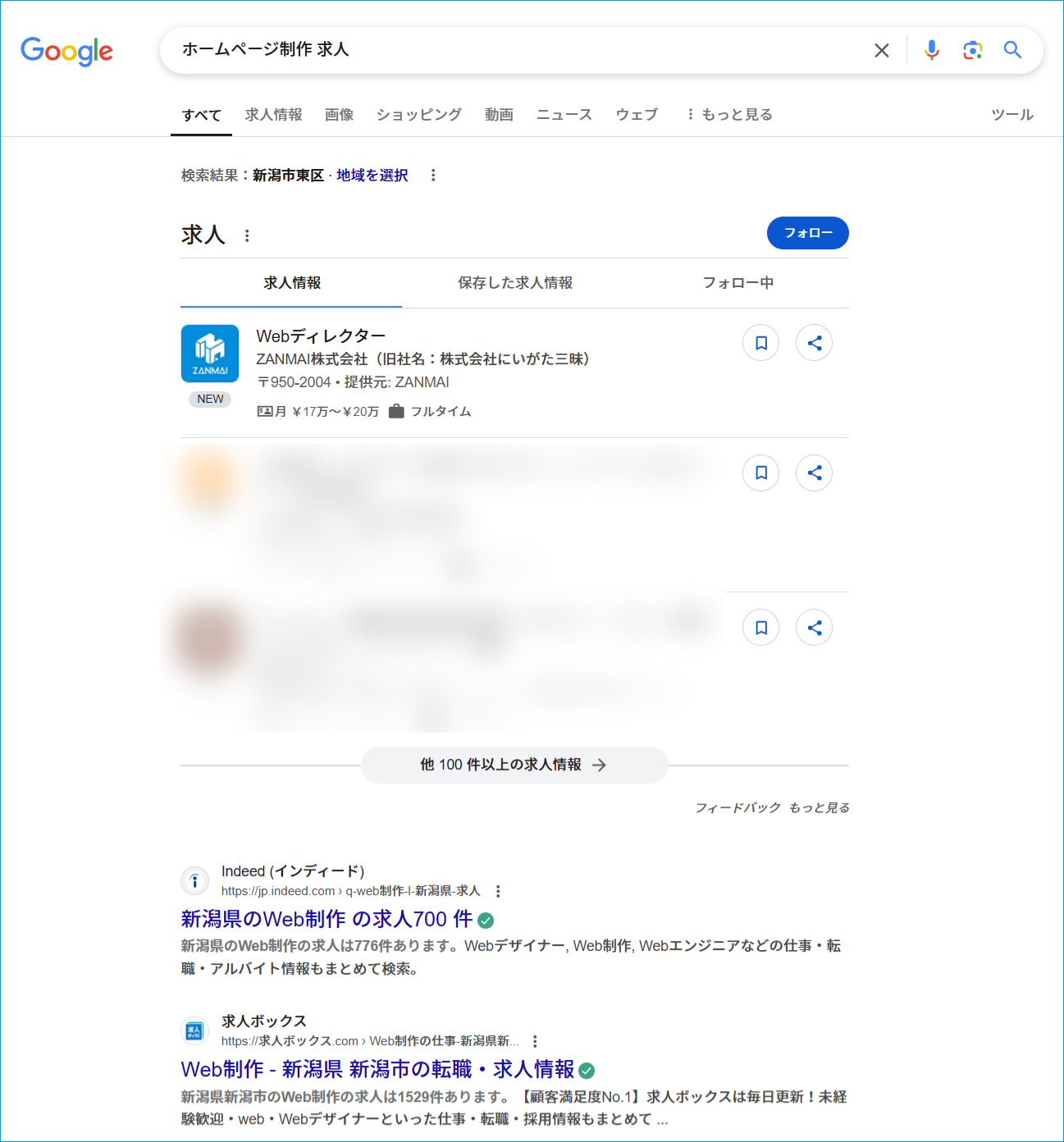 「Googleしごと検索」の枠に掲載されることで、求職者の目に留まりやすくなります。