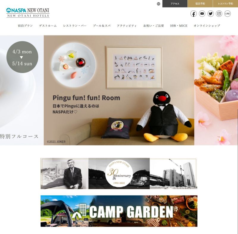公開したホームページでは、今回新たに撮影した写真を使用し、充実した設備やお料理、アクティビティなど、ビジュアルからもNASPAニューオータニ様の魅力が伝わるように工夫しました。
