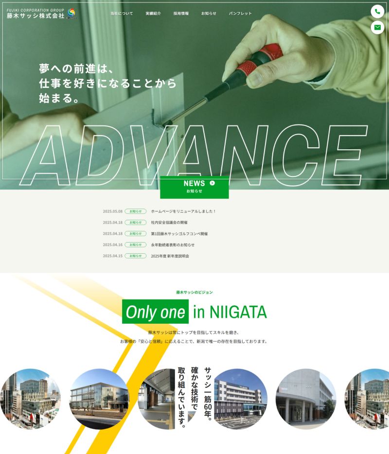 藤木サッシ株式会社様のホームページを公開いたしました。