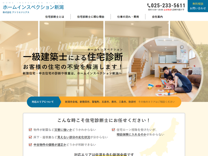 ホームインスペクション新潟のホームページが公開されました! 公開とともにサービスも本格稼働しますので、公開してしばらくサービス内容には細かな微調整が予想されますが、 a-blog cmsなら修正もあっという間です。 運用しやすいホームページになりました。