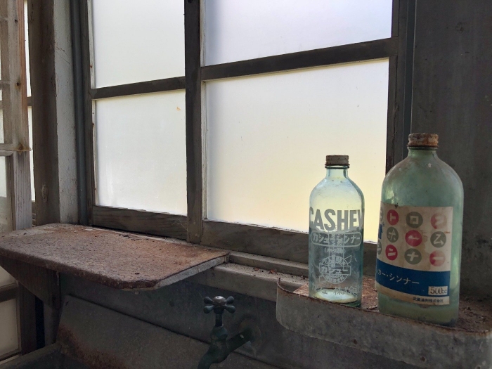 昭和レトロな瓶がかわいい!汚れ落としに使っていたのでしょうか。