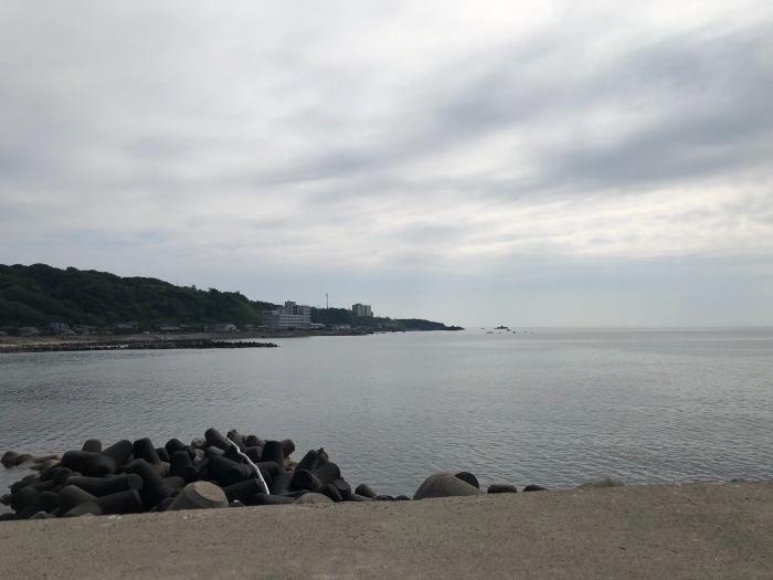 万長さんの目の前に広がるのは日本海!この日から梅雨入りだったため夕方は曇り空でしたが、穏やかな海の眺めはとても気持ちよかったです^^