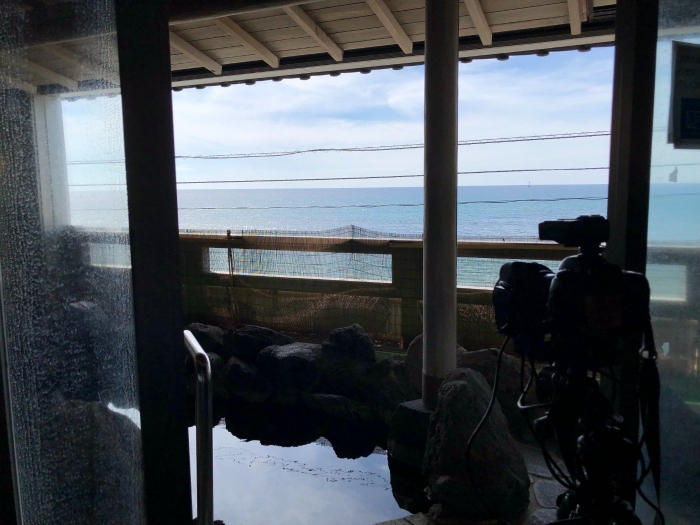 露天風呂の撮影。 海が見えることが伝わるとても素敵な写真が撮れました!