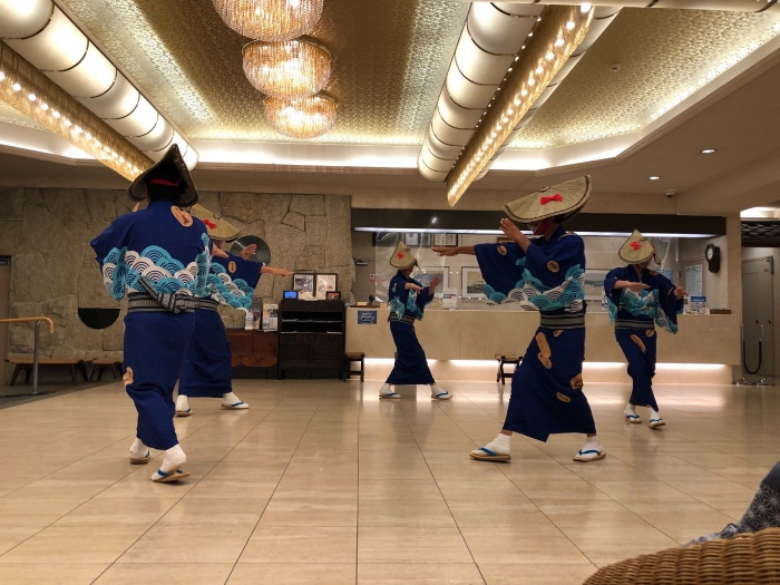 ちなみに、万長様では時々地元の団体さんがロビーで佐渡おけさ(佐渡を代表する民謡)公演を開いてくれます。