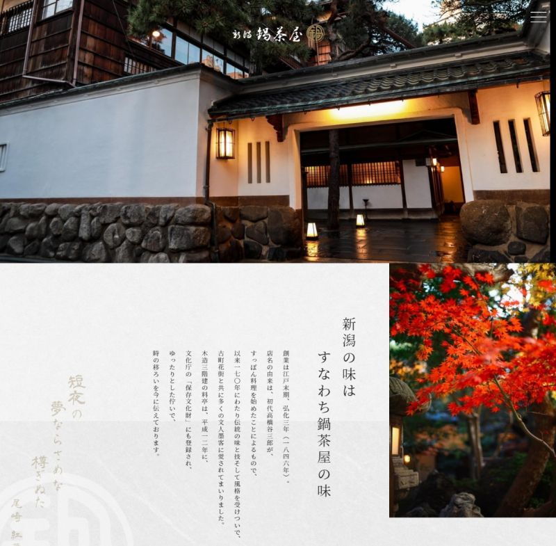 港町新潟で幕末から愛されてきた鍋茶屋様の、粋を極めたお料理や趣あるお部屋を、ホームページでぜひご覧になってみてください。