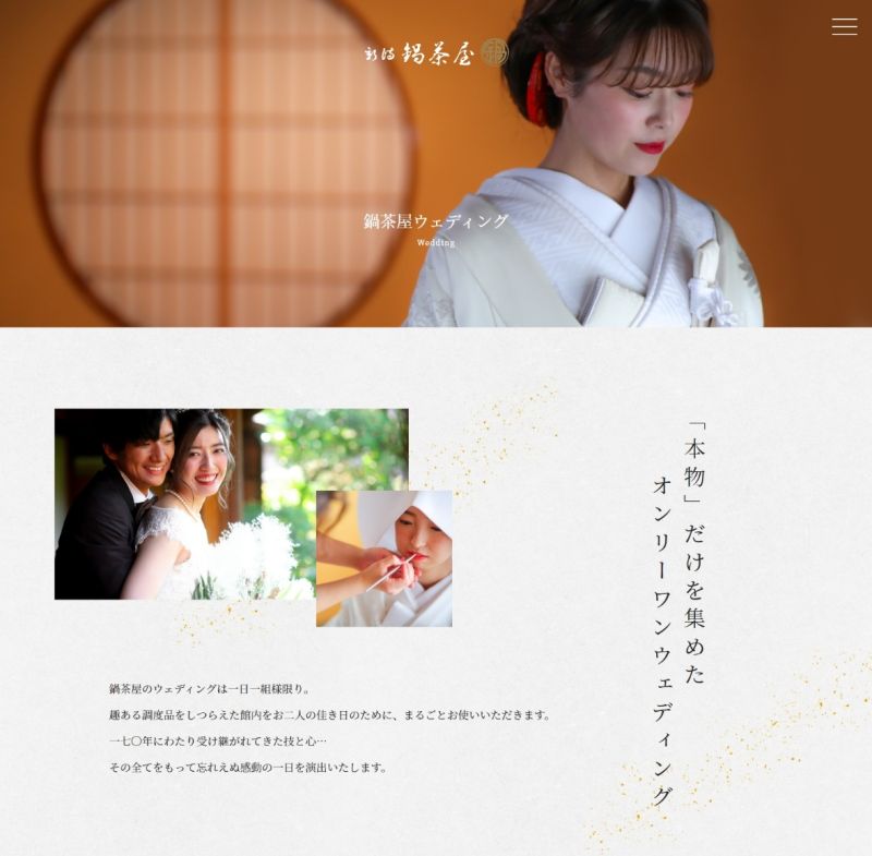 公開したホームページでは、これまで別のWebサイトで紹介されていた「鍋茶屋ウェディング」を統合し、ホームページをご覧になった方に「料亭・鍋茶屋でできること」を広く知っていただける形になりました。デザイン面では、長い歴史を持つ料亭ならではの魅力をお伝えできるように、お料理はもちろん、建物や古町芸妓にもご注目いただけるような構成にしています。