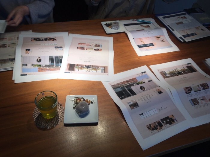 今回も広い机に資料を広げて、かなり細かいところまで打ち合わせ。