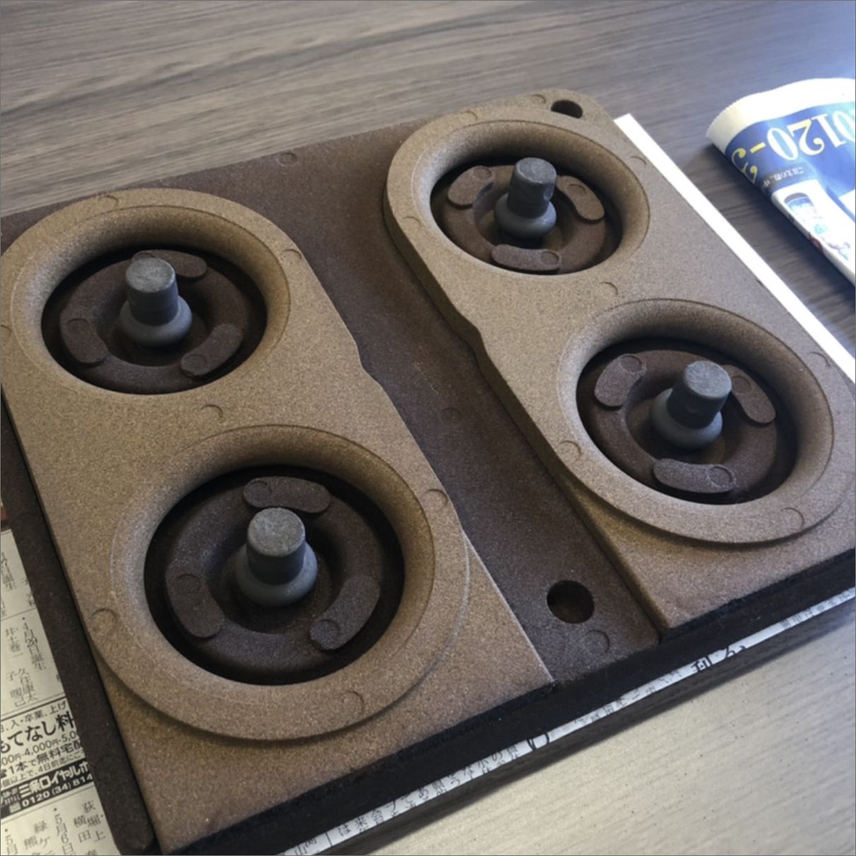 一般的な鋳物生産では、2つの鋳型を重ね、その間に金属を流すことで製品を完成させていきます。この方法では1セットずつしか作れないため、大量生産しようとするとスペースと時間がかかってしまいます。