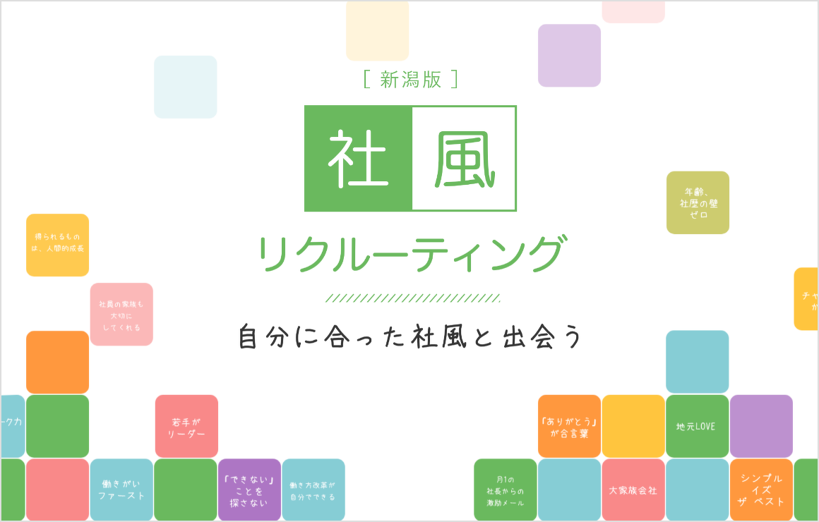 新潟県内の企業を、社風という切り口から紹介するサイトです。社風を知って、求職者と企業のマッチング率を高めることを目的にしています。