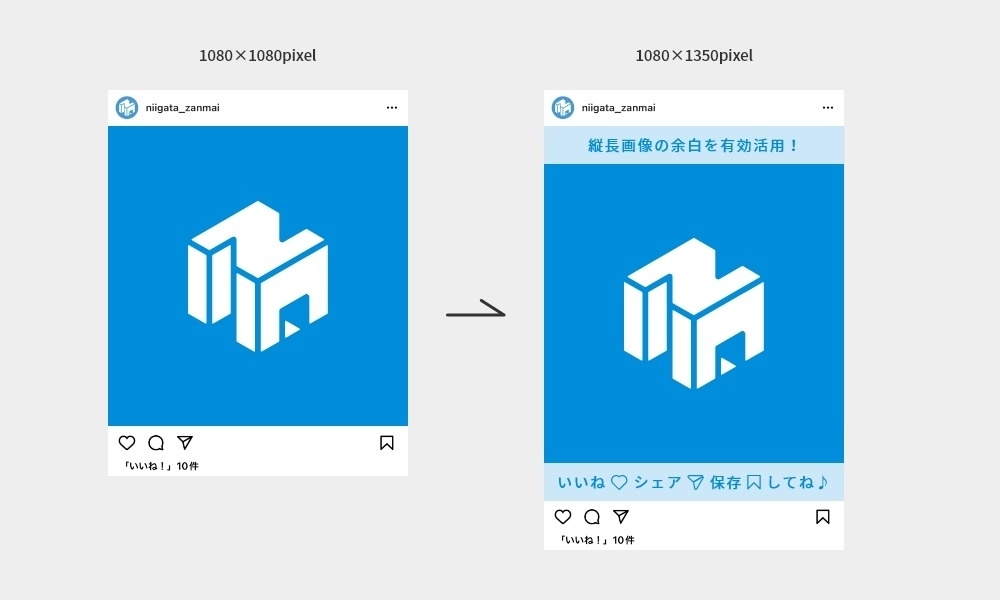 余白部分に「いいね」や「コメント」「保存」などを加えると、ユーザーの行動を促す効果が期待できます。