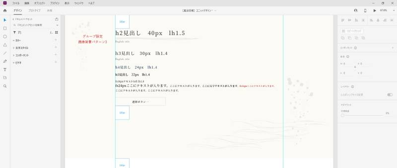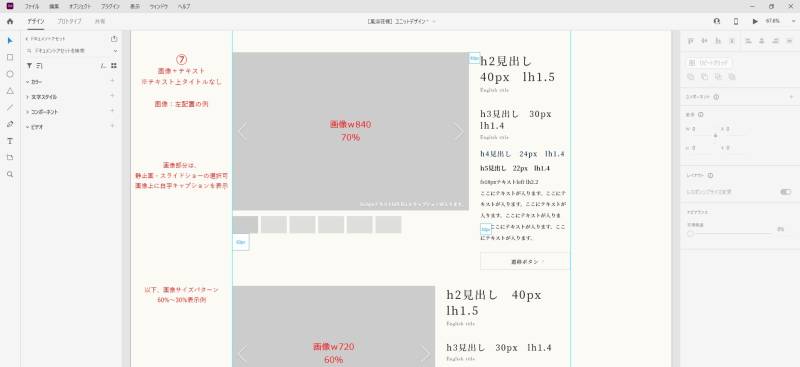 以下の画像は「画像+テキスト」というユニットのデザイン(一部)になります。