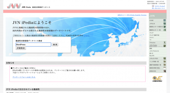 「脆弱性対策情報データベース」と言うホームページをご存知でしょうか?