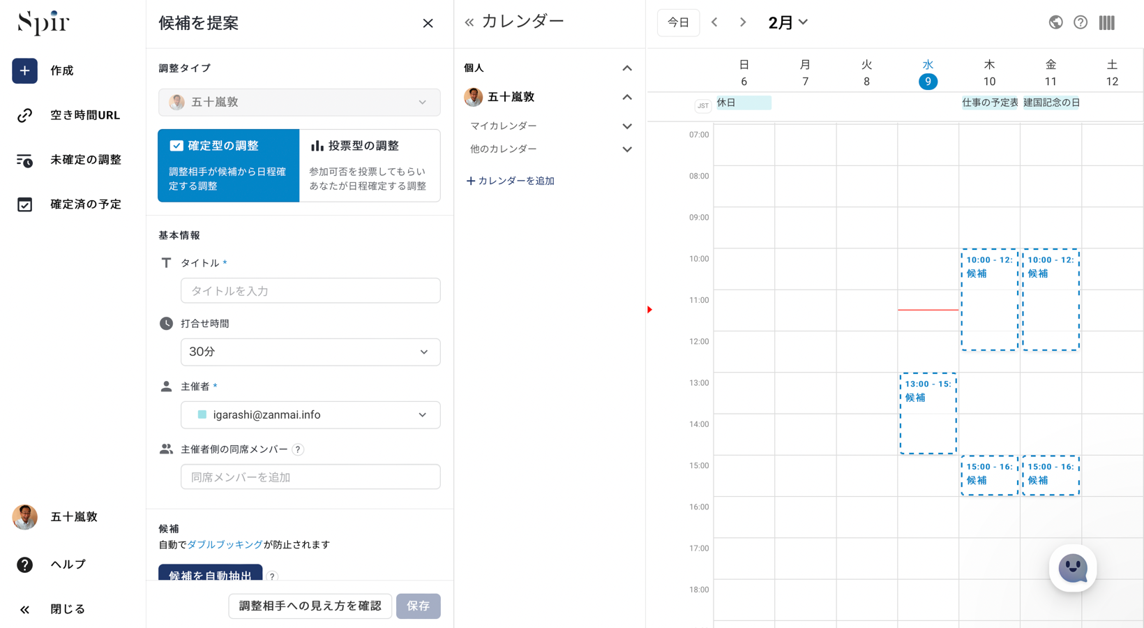 このSpir(スピア)は、打ち合わせの日程調整に特化しているので、機能も非常にシンプルで使い勝手も良さそうです。