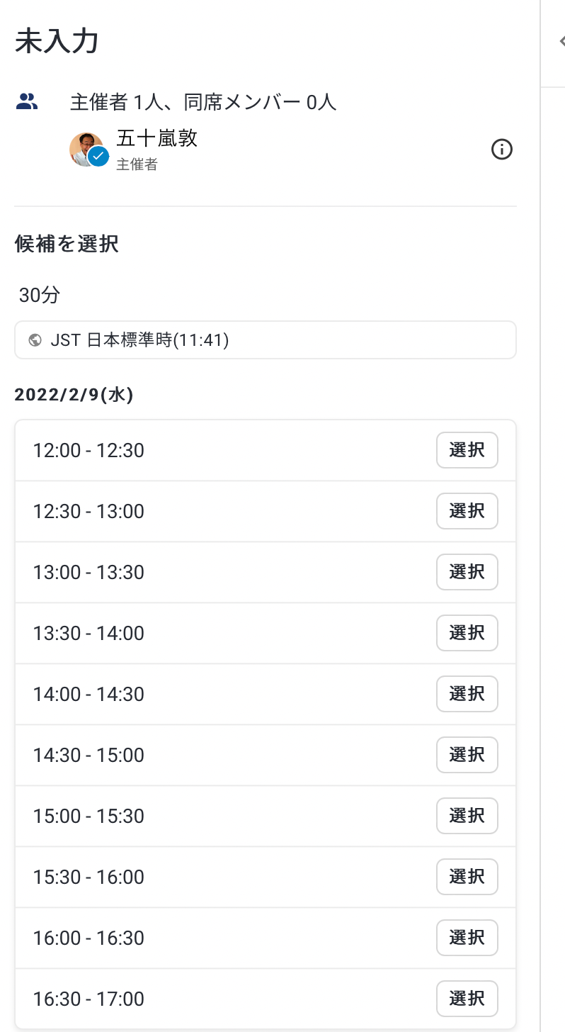 あと、打合せ時間を「15分」「30分」「45分」「60分」・・・・、と選ぶことで、カレンダーで選んだ枠の中で勝手に細分化してくれます。