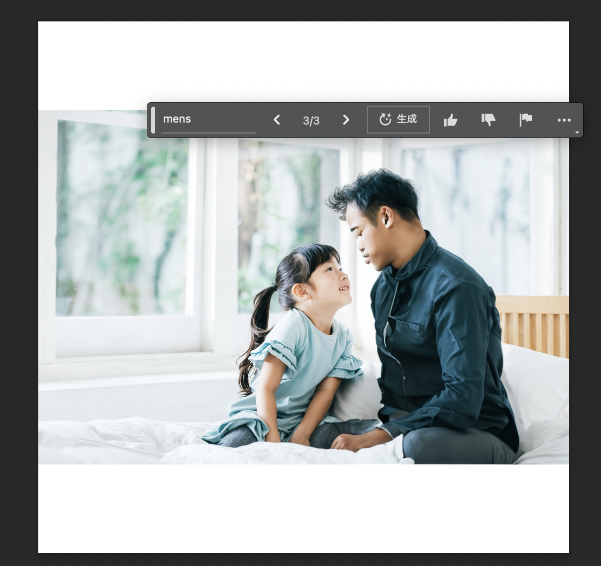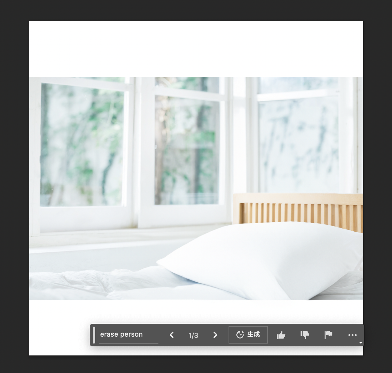それを立ち上げて、今回はベットの上にいる親子を消したり、別のものにしたり、あるいは足りない画像部分を補ってもらうことにしました。