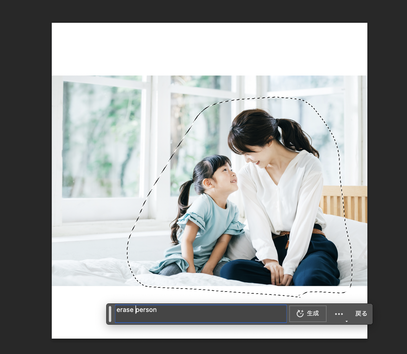 まず、ママの部分のみを選択ツールで囲います。プロンプトは「mens」。