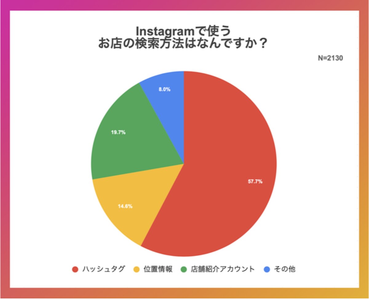 上記結果から、ユーザーはInstagram上で店舗を探すときにハッシュタグをよく使うことがわかります。