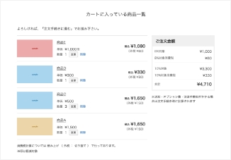 商品毎に単価、販売価格、在庫数、残数表示上限値、消費税率、配送グループを細かく管理できます。