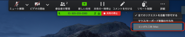 複数人でzoomに入っている場合は、複数人の中からリモートしてもらう相手を選ぶ必要があります。