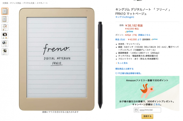 ホームページ制作の仕事をしていると、ラフのデザインとかアイディアとかを、紙に書いたりすることは多いので、スタッフにこのデジタルノート「フリーノ」を買ってあげようかと思ったのですが、価格はオープン価格。