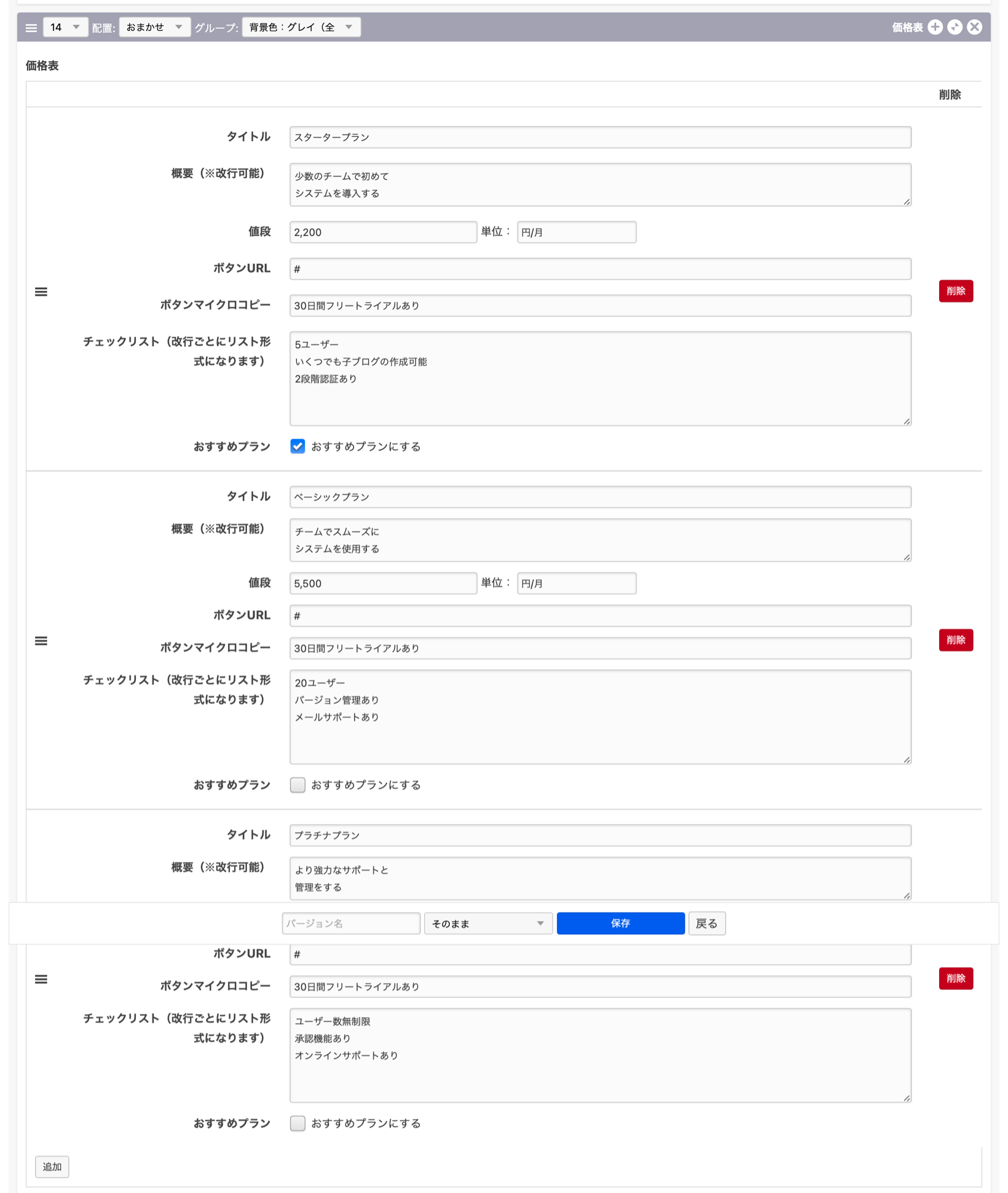 いろいろ用意されているカスタムユニットの中でも私が気に入っているのは「価格表」のカスタムユニットです。