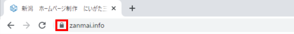 こちらは、ホームページに「SSL」の設定がされていない場合にこのような表示になります。