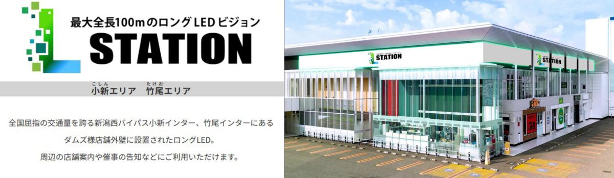 新潟市最大の繁華街「新潟万代地区」に、10.24メートル×5.12メートルの大型ビジョン「D-STATION」を設置。また、新潟市東区と西区には、100メートル超のロングLEDビジョン「L-STATION」を展開し、地域に根ざした広告サービスを提供。