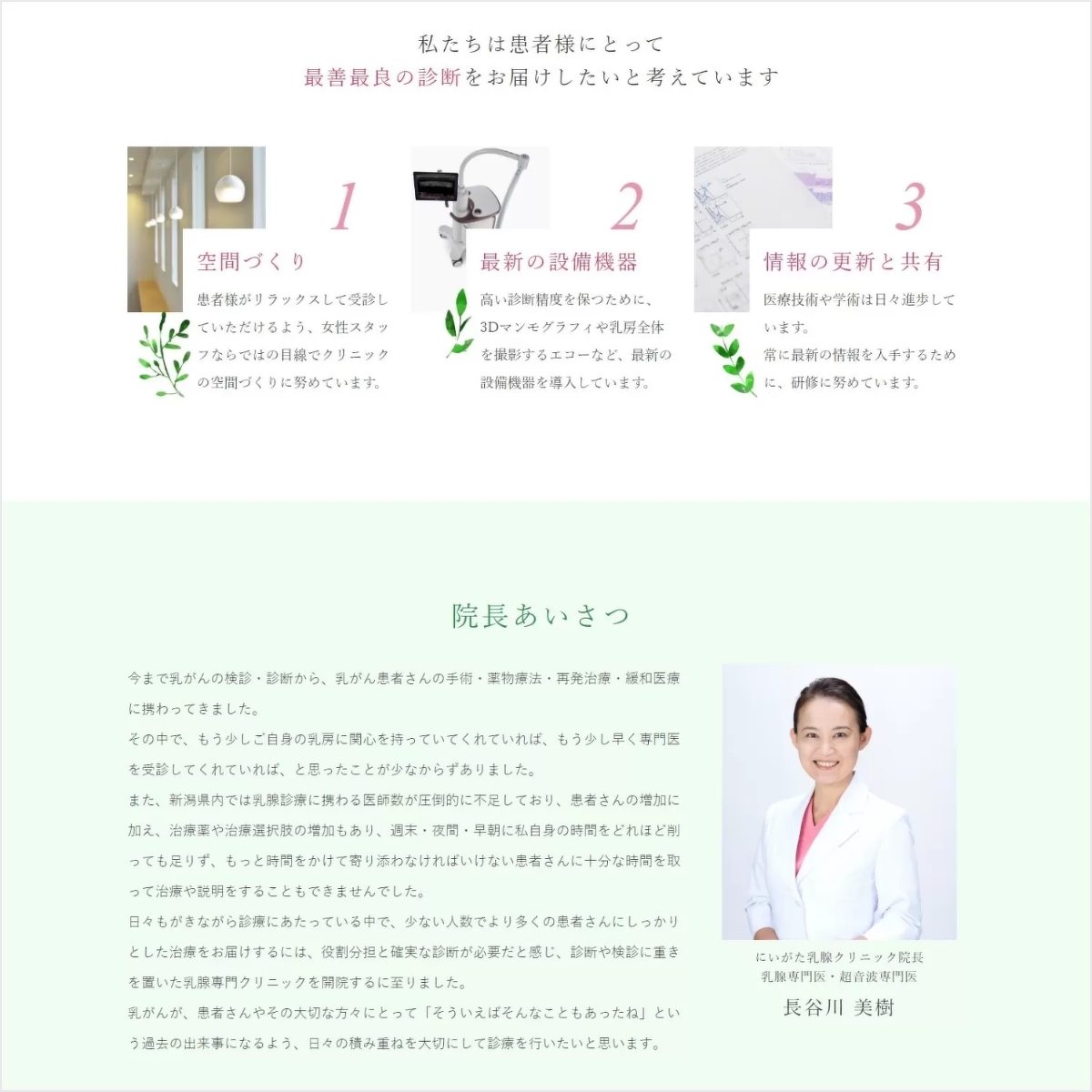 「よくある質問」ページは特に力を入れました。当院に来院される方はもちろん、それ以外の方にも乳がんや乳がん検診について正しい情報が広まるようにと思い、文章を考えました。