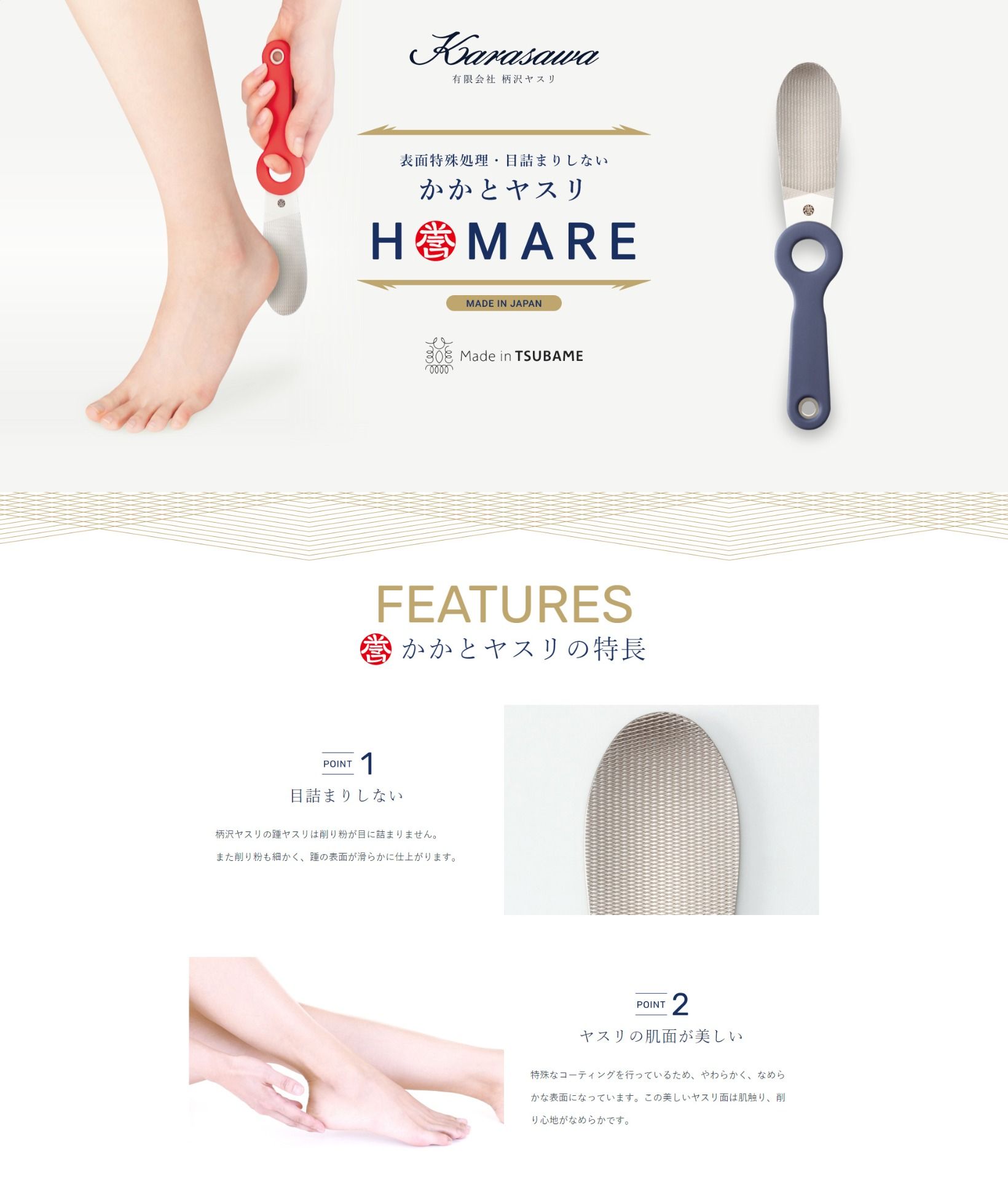 燕市の柄沢ヤスリ様の「かかとヤスリ誉」のランディングページを制作しました。