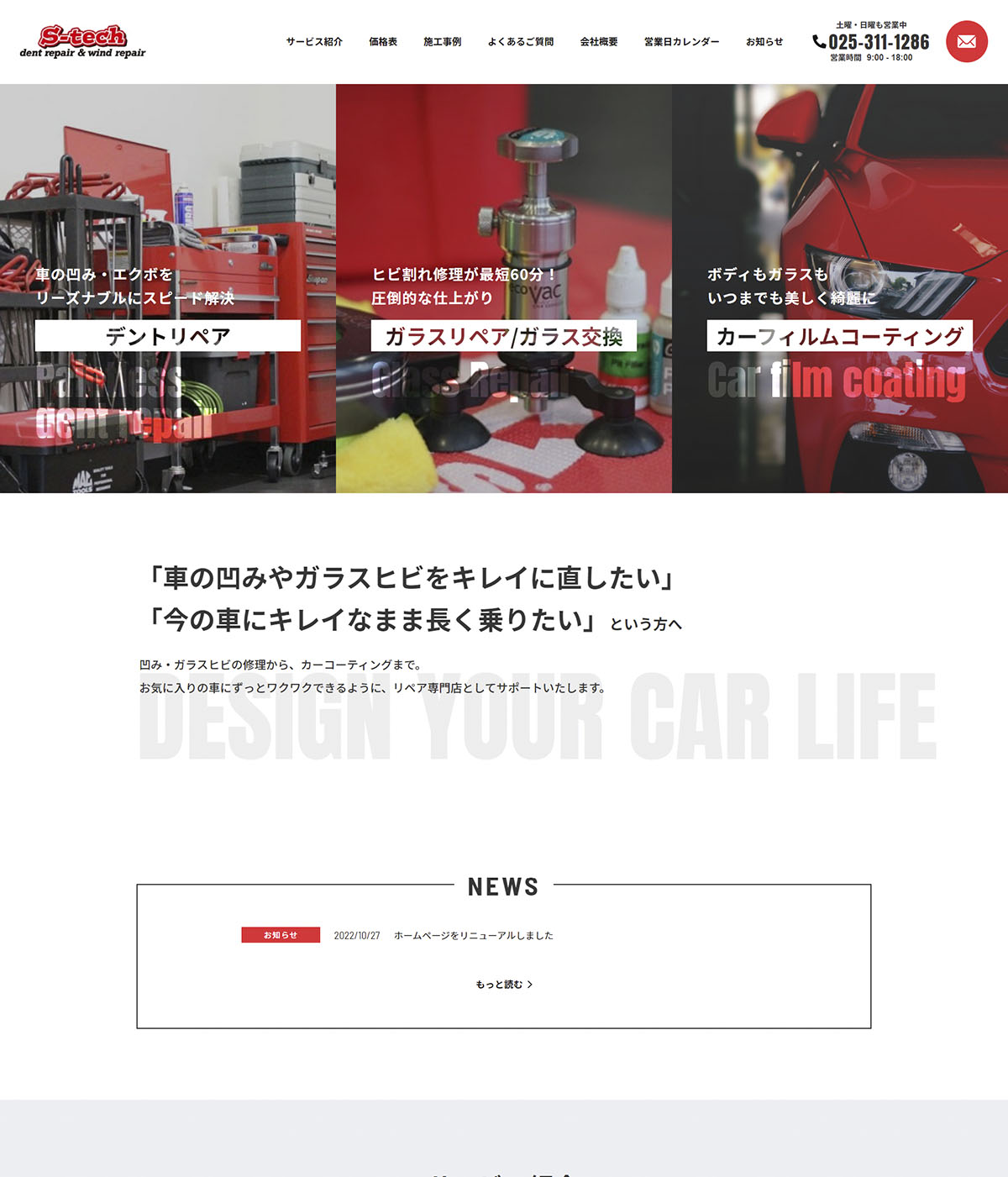 スピーディーな対応と仕上がりの良さに定評があり、フロントガラスのリペアでは年間施工実績2,000台。また、凹みには板金とは異なる新たなデントリペアという手法で従来手法より早く安く美しく仕上がるということが評判で、年間4,000台以上の実績をお持ちです。