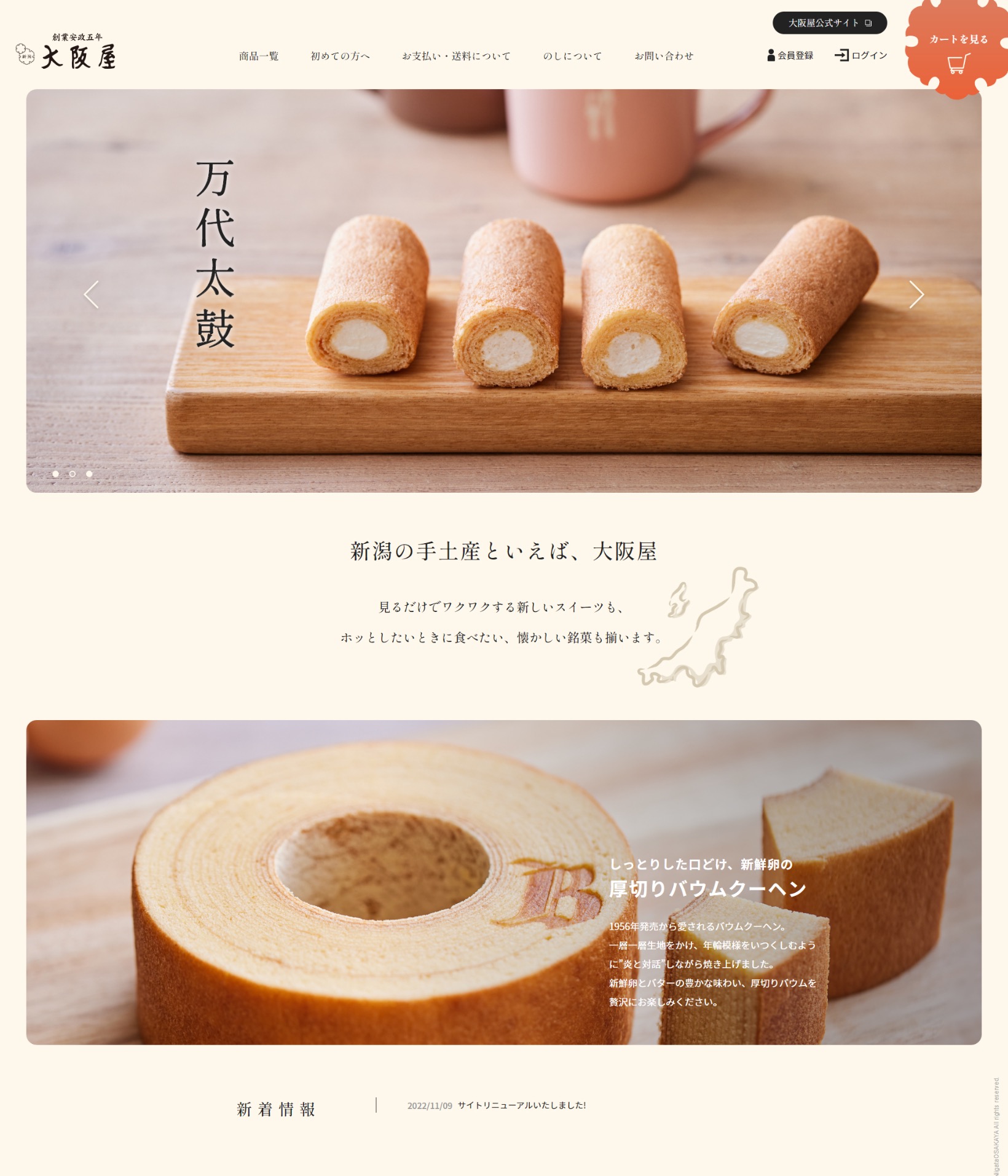 新潟県内に多店舗展開されている和洋菓子店の株式会社大阪屋様の公式ショッピングサイトを制作しました。