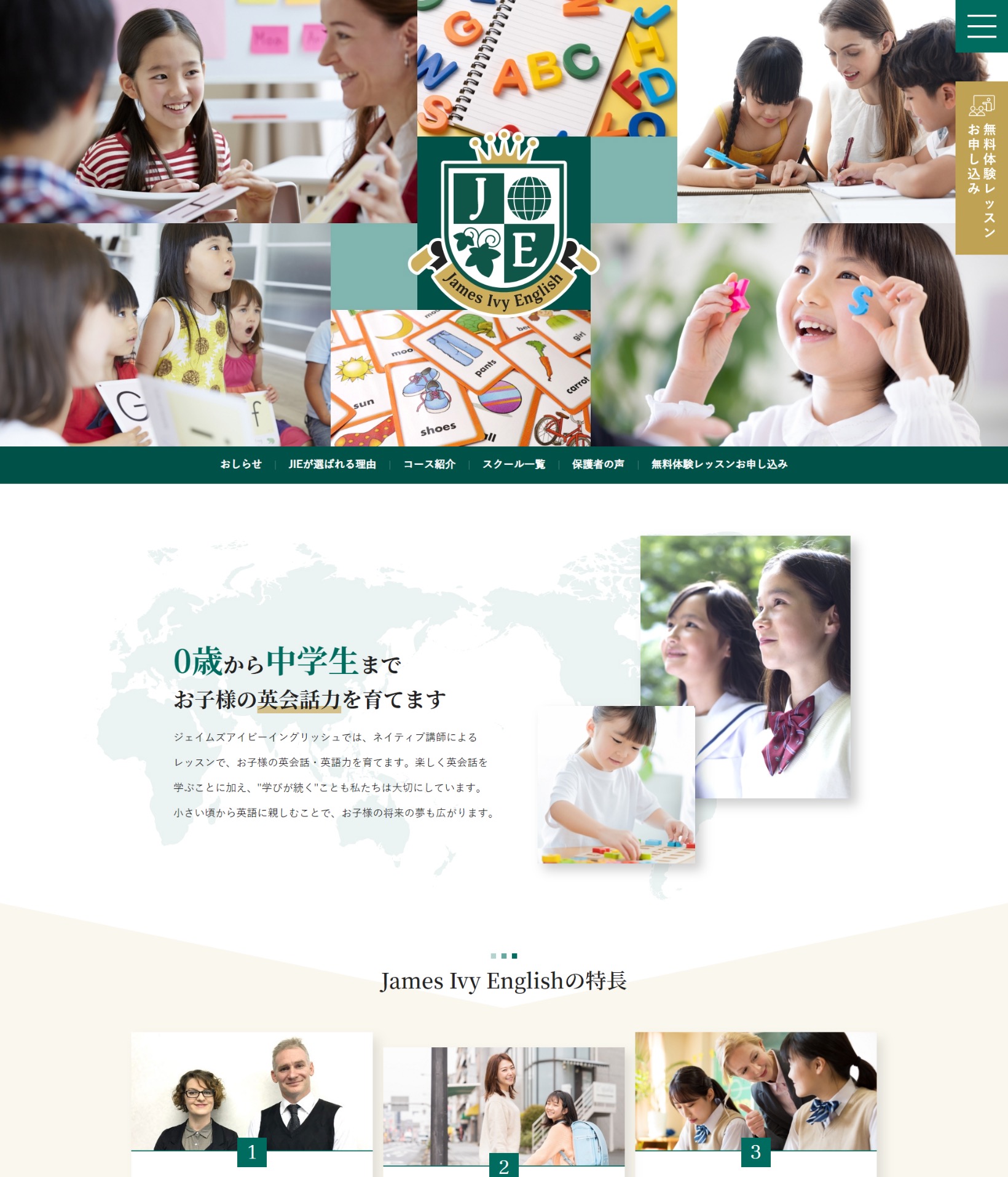 仙台市を拠点に東北・新潟に多校展開されているジェイムズ英会話様の子供向けコース「James Ivy English」サイトのリニューアルをさせていただきました。