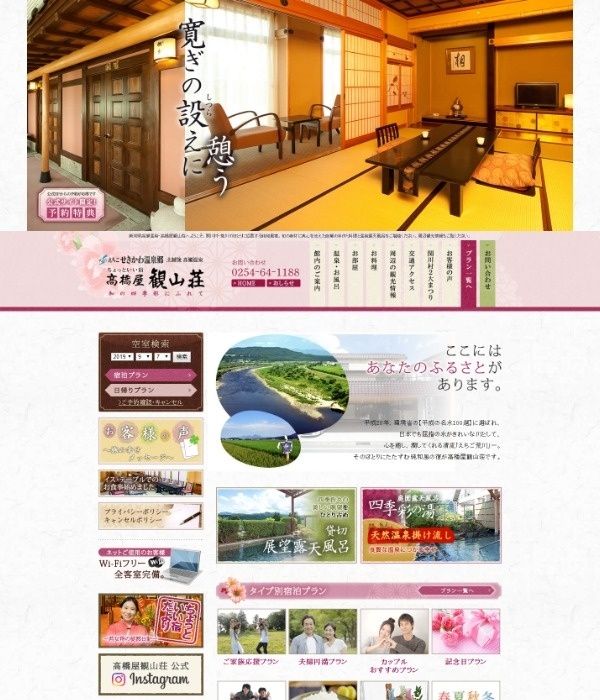 関川村の高橋屋観山荘様のホームページを制作いたしました。荒川のほとりにたたずむ純和風のお宿なのでしっとりとした和の雰囲気を前面に出しつつデザインいたしました。タイプ別宿泊プランをトップページに配し、ユーザーがベストなプランを探しやすいよう配慮した設計となっています。